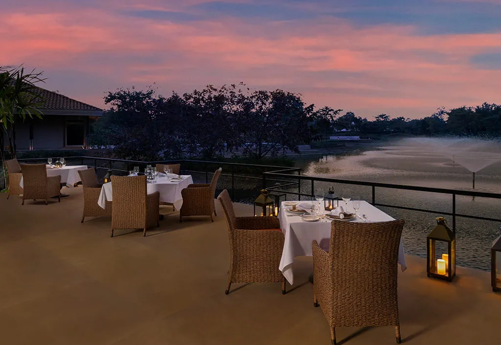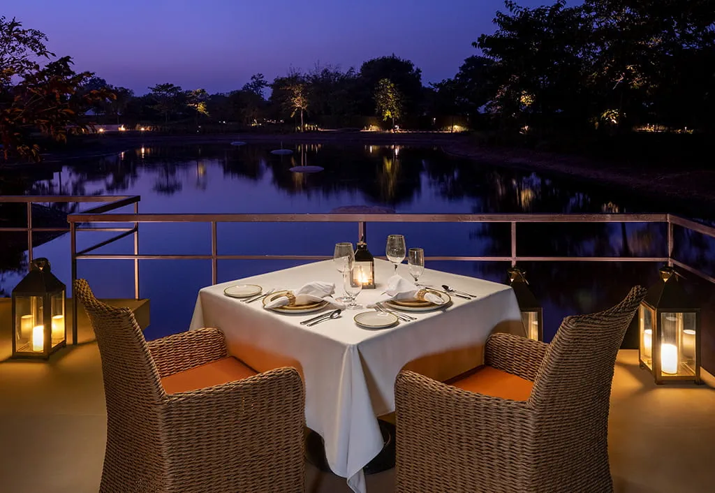 Make your evening unforgettable at our starlit outdoor dining venue. Experience the warmth of a crackling bonfire and stunning views of lush greenery, a tranquil lake and majestic mahogany trees. This enchanting setting is perfect for a leisurely meal served with heartfelt Oberoi hospitality. Available for private dinner bookings for up to 4 guests and informal cocktails for up to 12 guests between October and March.