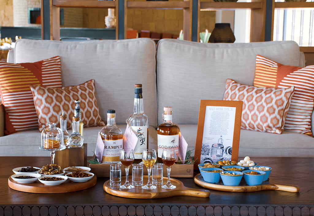Step into the world of Indian craftsmanship with a guided whiskey tasting that explores the rich, diverse flavours of India’s finest single malts. This exclusive experience showcases three distinctive expressions that celebrate tradition, innovation and terroir.