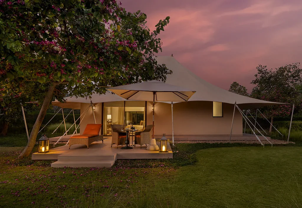 Experience an enchanting poolside dinner amid fragrant, flowering Kachnar (Indian Orchid) trees. Bathed in moonlight, this exquisite setting offers unparalleled views with bespoke dining menus designed to complement the ambience. Available for private dinner bookings for couples. Please not: Kachnar trees typically bloom between November and March.