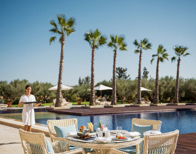 TamimtInstallez-vous sur la terrasse avec vue sur les montagnes de l’Atlas ou dînez à l’intérieur sous de majestueux lustres tout en observant nos chefs à l'œuvre dans leur cuisine ouverte. Le restaurant Tamimt à Marrakech dispose également d’un salon pour savourer un apéritif ou un digestif après le dîner.