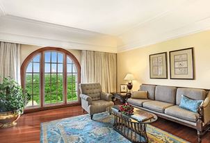 Kohinoor SuiteWith unparalleled Taj Mahal views from every room, even the king size bed faces Agra’s iconic monument. White marble elephants and golden domed ceilings, mirrored walls, and marble columns imbue the suite with palatial grandeur.