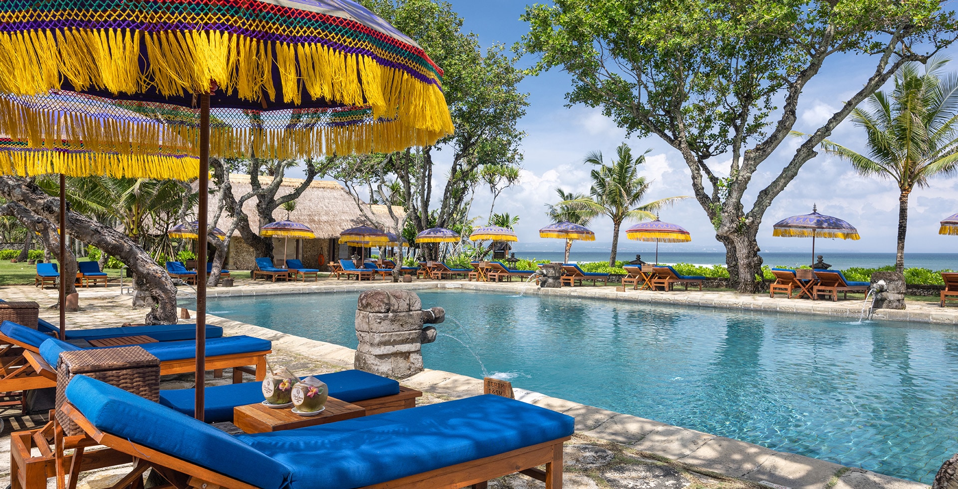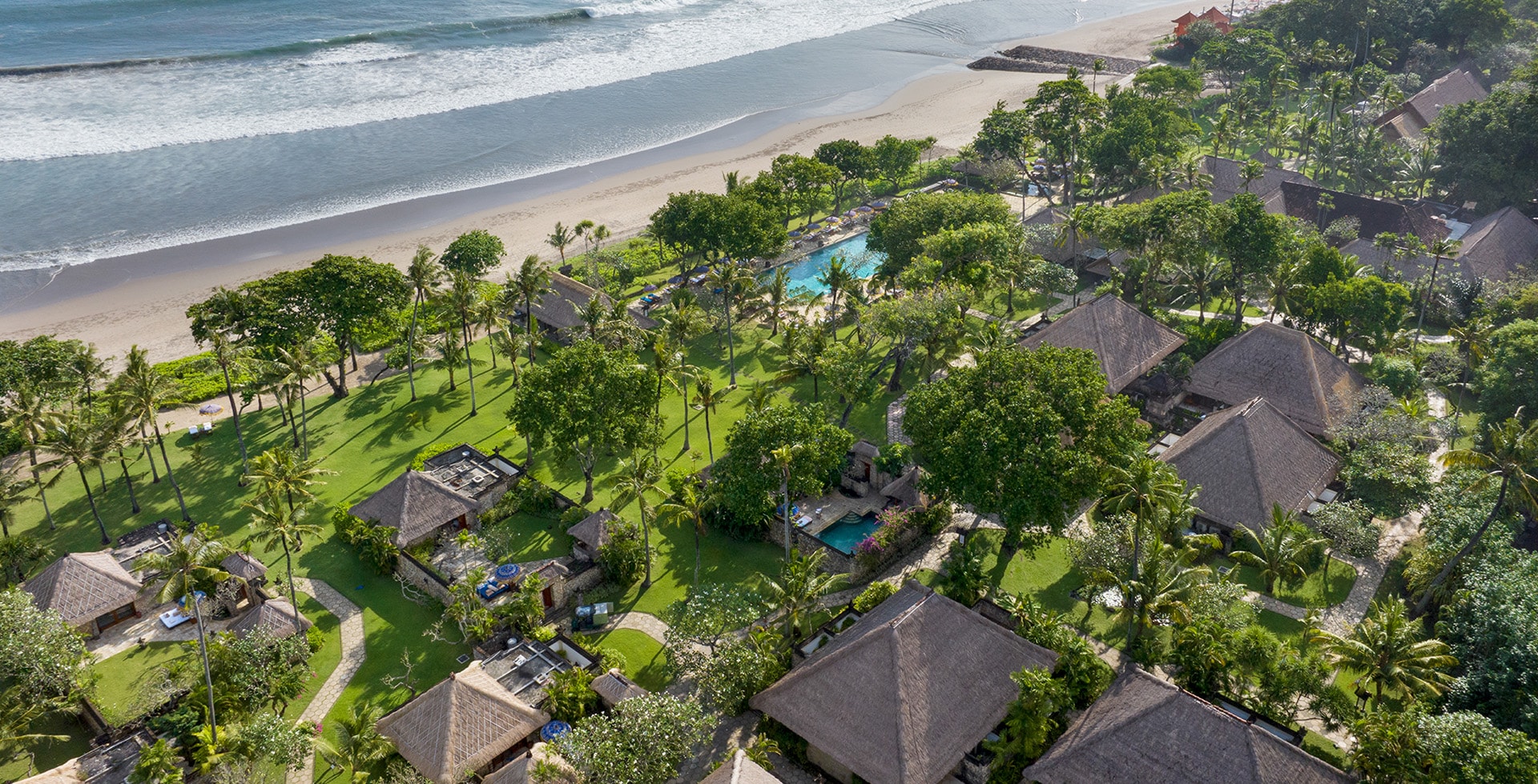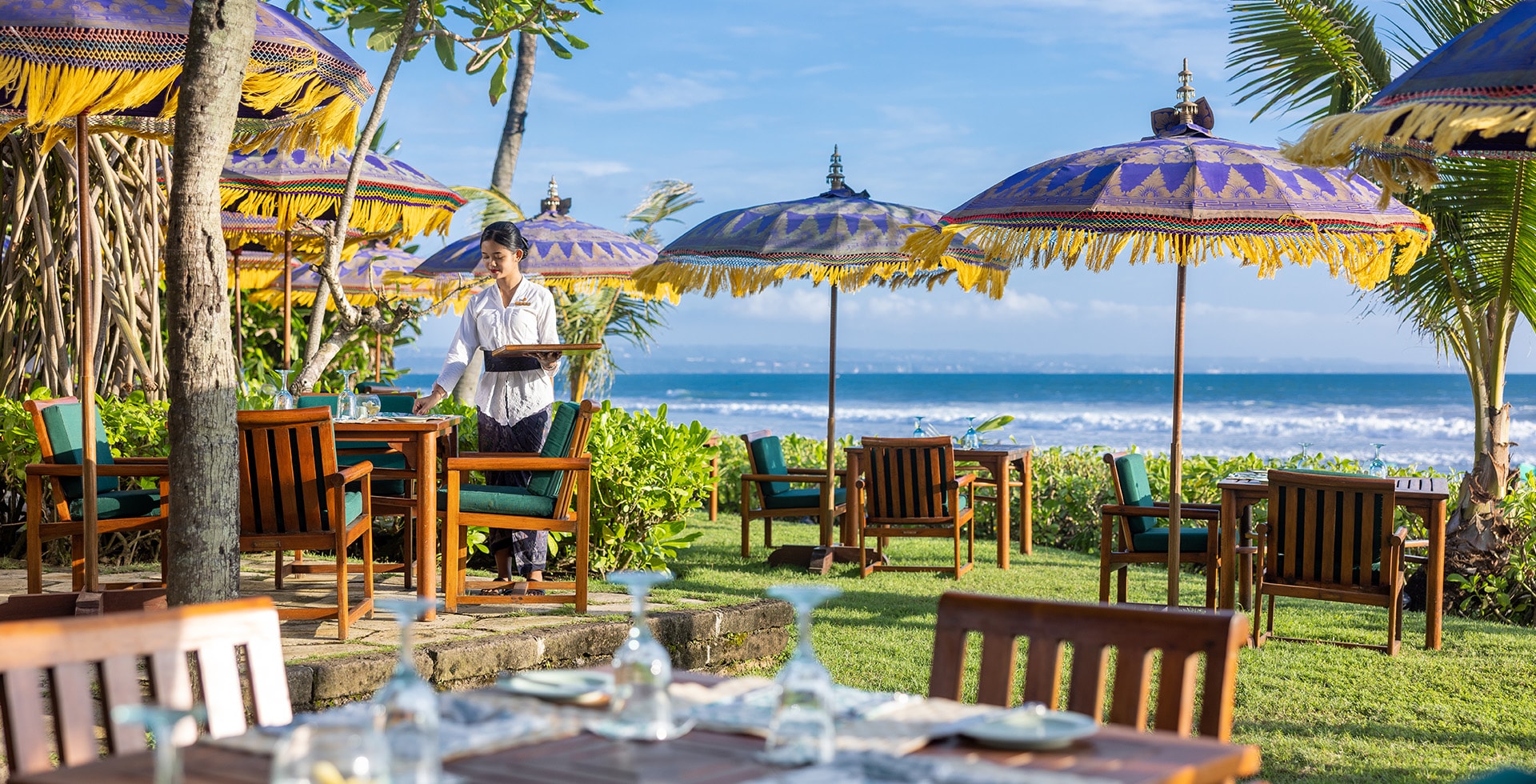 The Oberoi Beach Resort, Bali. Located on Seminyak Beach and set within 60,702 square metres (15 acres) of lush gardens, the resort features a natural amphitheatre for traditional Balinese dances - offering an inimitable and immersive experience of Bali.