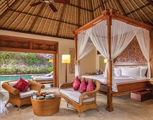 Great care has been taken in these villas to maximise natural light and natural materials to create an authentic, relaxing ambience. Perfect for those who wish to switch off and take a break. The spacious 80 square metres interior include a canopied king size bed and an ensuite bathroom with private garden views. Outside, a large terrace, a private pool and an al fresco dining pavilion provide ample opportunity to relax.