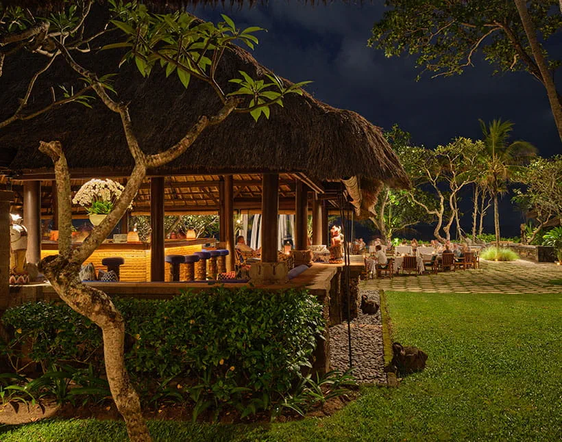 Kayu Bar serves classic and contemporary cocktails, champagne, fine wines, light meals and snacks. Take a seat at a candlelit table beside ocean and garden views, and enjoy live, traditional entertainment. Kayu Bar is open from noon to midnight.