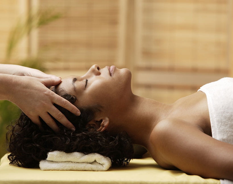 A gentle massage that stimulates energy points in the shoulders, neck and face. Afterwards, a gentle stream of warm coconut oil is poured across your third eye, which stimulates healing, restores balanced health and calms the mind.
