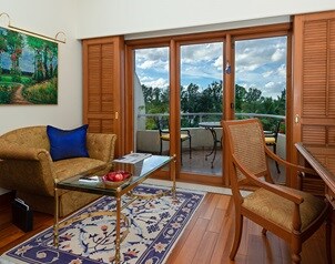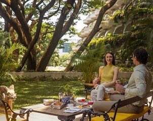 The centrepiece of this luxurious suite with 91 square metres interiors, is a large private terrace where you can experience private dining or entertain guests under the canopy of our centenarian raintree, with views over our lush gardens. Interiors include a master bedroom, living and dining areas, a powder room, a pantry and an Italian marble bathroom with a his and hers vanity area.