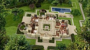 This expansive villa, with 392 square metres of interiors, is inspired by traditional Rajasthani haveli mansions. From the authentic architecture and design features to the sunlit central courtyard, every element evokes royal grandeur. At its heart lies a temperature-controlled private pool, overlooked by a domed al fresco dining pavilion and a stage. Facing the courtyard are three naturally lit private buildings: a master bedroom with a bathroom offering private courtyard views, a twin bedroom with an equally beautiful ensuite and an opulent living and dining room. All thoughtfully attended to by your personal butler.