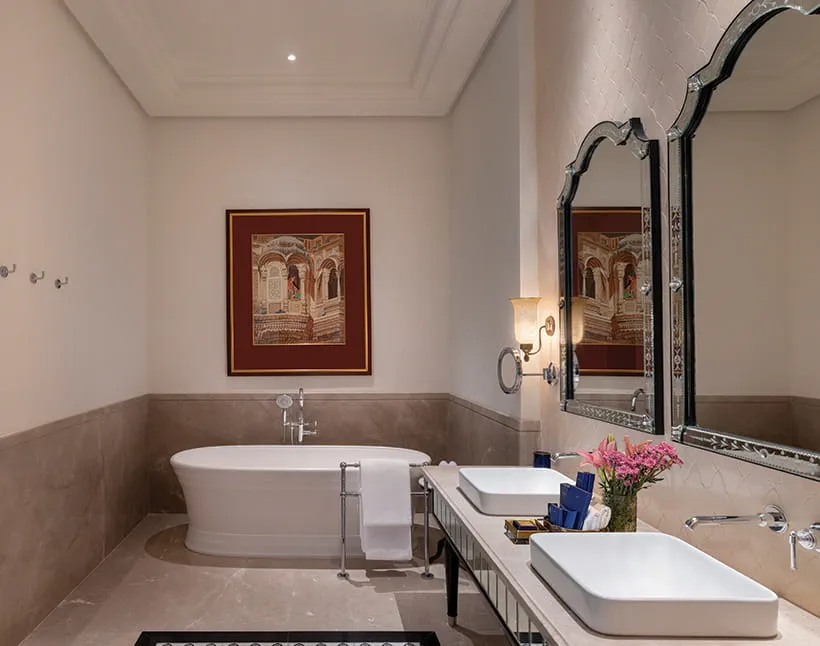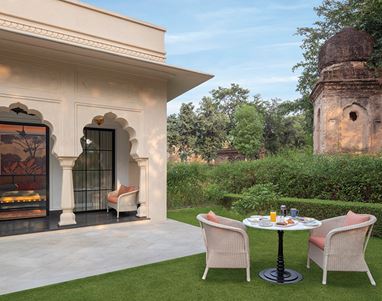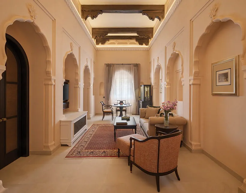 Traditional lime plaster walls and majestic clerestory windows imbue these suites with an ancient grandeur. Interiors include a master bedroom, an ensuite bathroom and a separate sitting area.