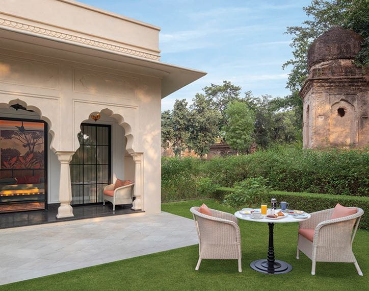 Arranged in small clusters, with 75 square metres of interiors these opulent rooms have a master bedroom with a walk-in wardrobe and a window seat with a day bed. Exteriors include a sheltered veranda and a private garden.