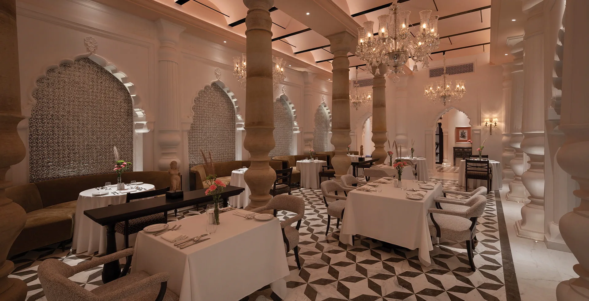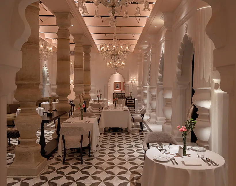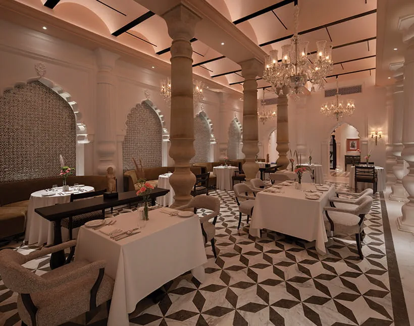 MaanyaServes authentic royal recipes from an era gone by in a majestic palace setting, with indoor and outdoor seating. The ornate indoor spaces and open air terrace offer serene views of Maniyagarh Hills and Palace grounds. Open for dinner only.