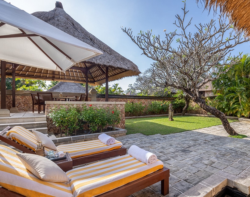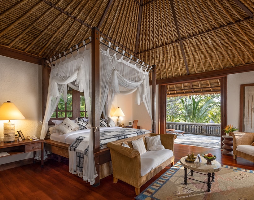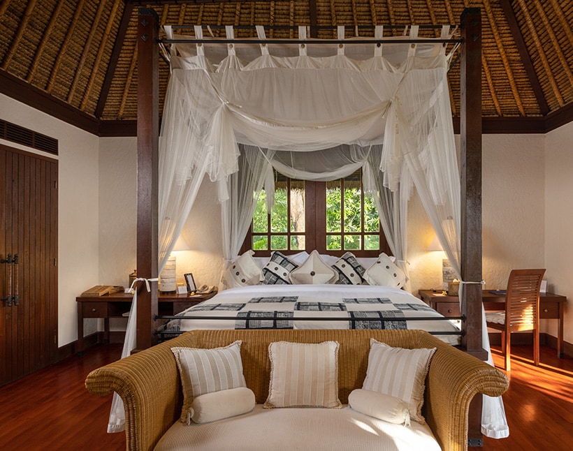 The perfect setting for you to relax on a canopied king size or twin bed, unwind in your living space or stretch out on a sun lounger in your private courtyard with its picture perfect lily pond. Naturally lit and thoughtfully composed with natural materials and a soothing palette. These expansive villas offer 90 square metres interior space, featuring traditional thatched roofs and natural stone walls, handmade fabrics, carved wooden features and local artworks.