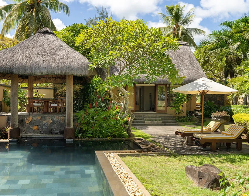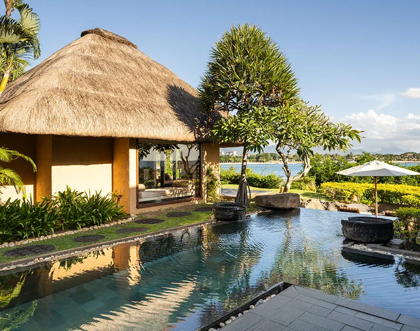Three Bedroom Royal Ocean View Villa with Private PoolChoose between two thatched king size bedrooms and a twin, all ensuite, with terraces and sun loungers. The garden features a thatched dining pavilion and a swimming pool. Ocean and Private Garden views throughout.