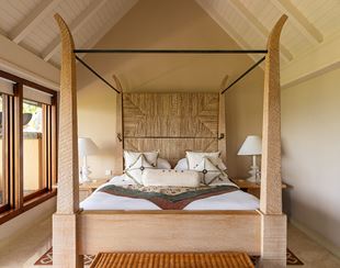 These thatched villas with 70 square metre interiors, include a king size bedroom, an elegantly appointed living area with natural cane and bamboo furniture, and a naturally lit bathroom with a sunken marble bath. Within the private courtyard garden, you can relax in your own heated swimming pool, stretch out on a sun lounger, or enjoy spectacular sea views from the raised dining pavilion.