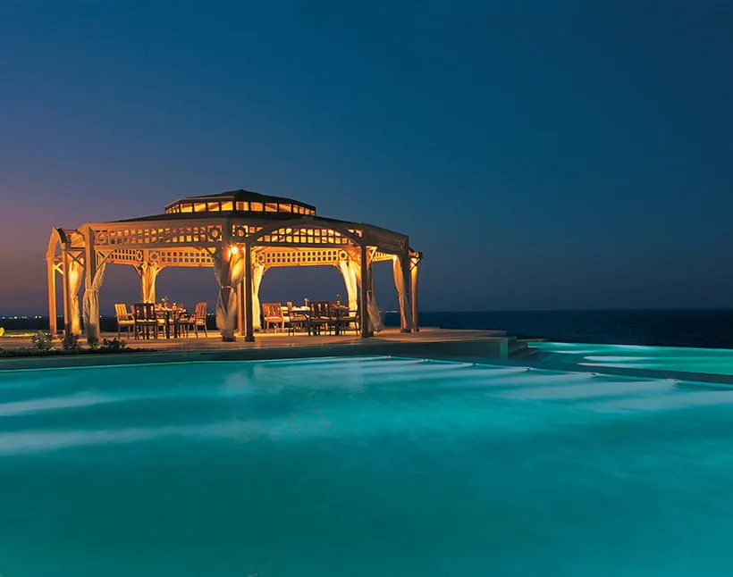 Dining arrangement is split between a poolside dome and a wooden framed space, closer to the beach and the gentle sea breeze. Having taken a dip in the sea or our infinity pool, they are the perfect places to relax over a leisurely meal of Mediterranean or Far Eastern cuisine.