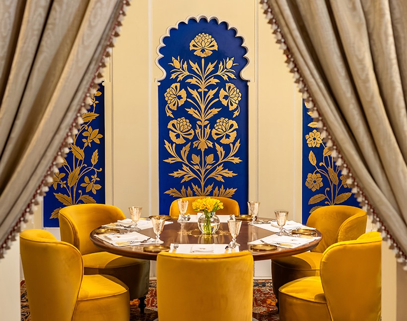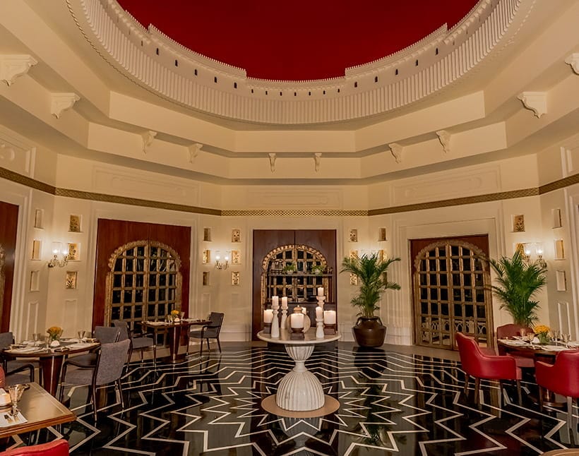 Suryamahal and ChandniTake a seat under the blue sky, beneath the cloud-brushed dome of Suryamahal, or dine al fresco beside sweeping lake and palace views at a mosaic of canopied tables caressed by live, traditional music at Chandni.