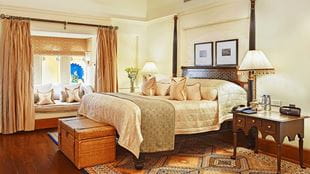 With its gold domed ceilings, mirror mosaics and hand carved marble privacy screens, the Kohinoor Suite with 246 square metres interiors, is a rarity. A master bedroom and twin bedroom, a spectacular dining room, living room and private pool occupy a tasteful 246 square metres. All the very latest technology, including three television sets, bring a touch of modernity to this true classic.