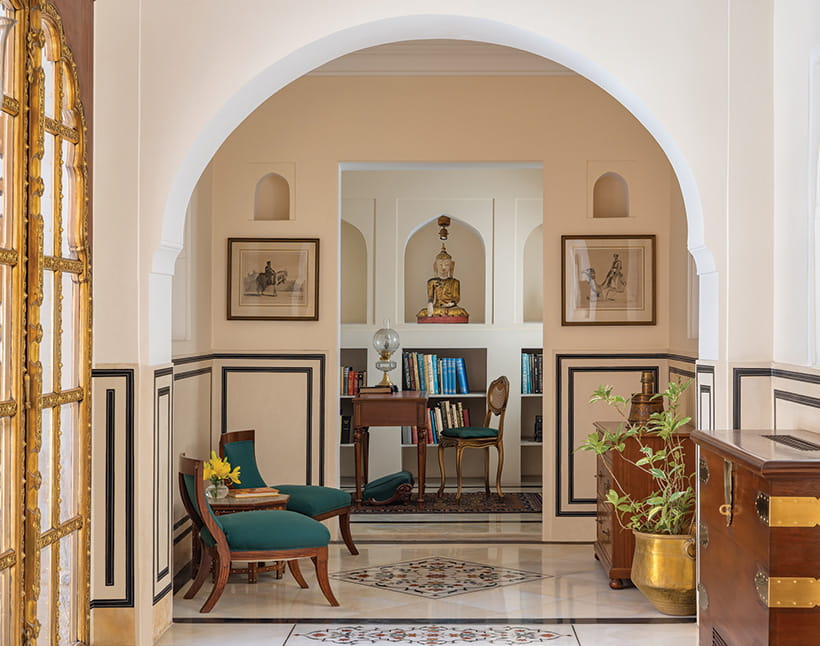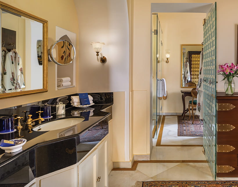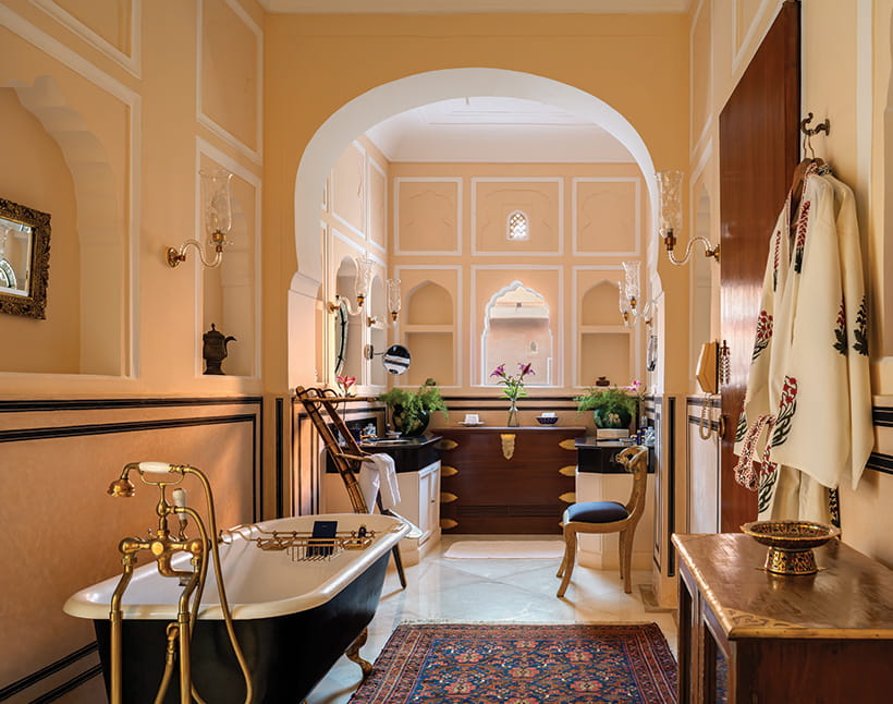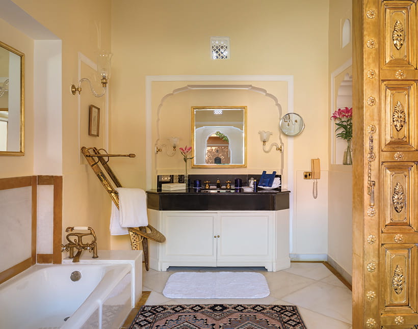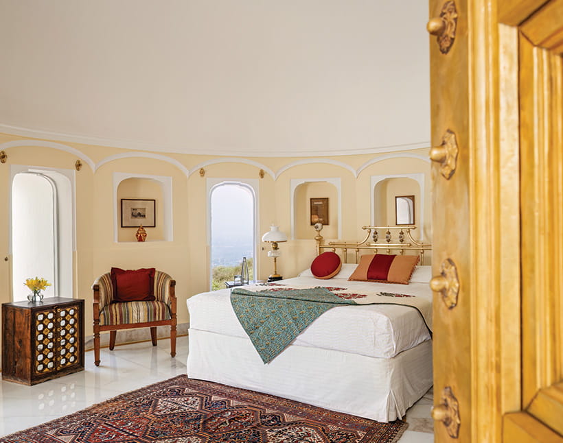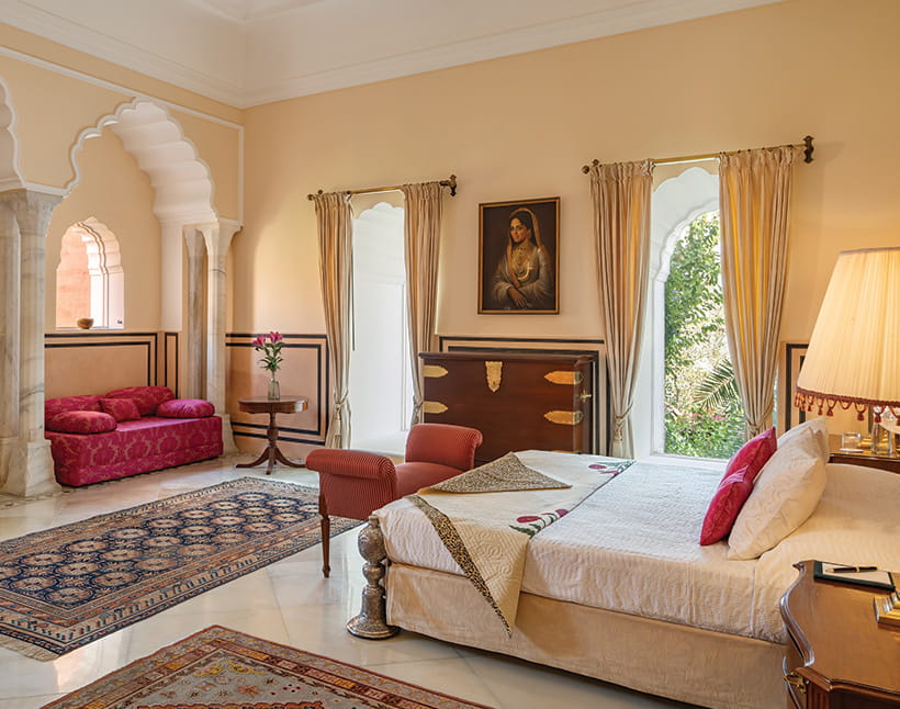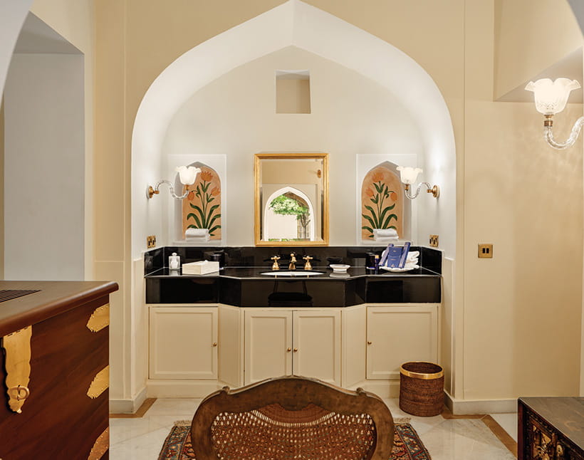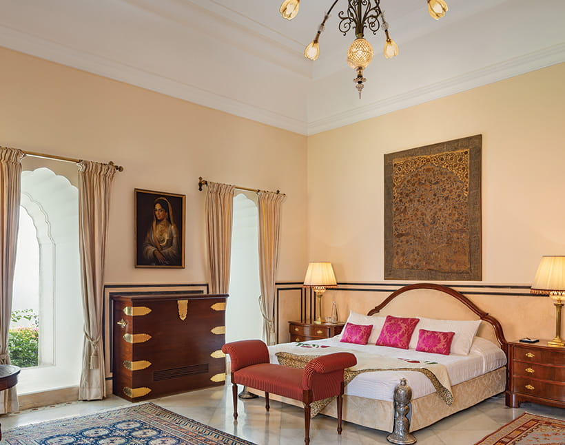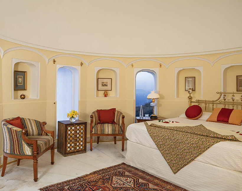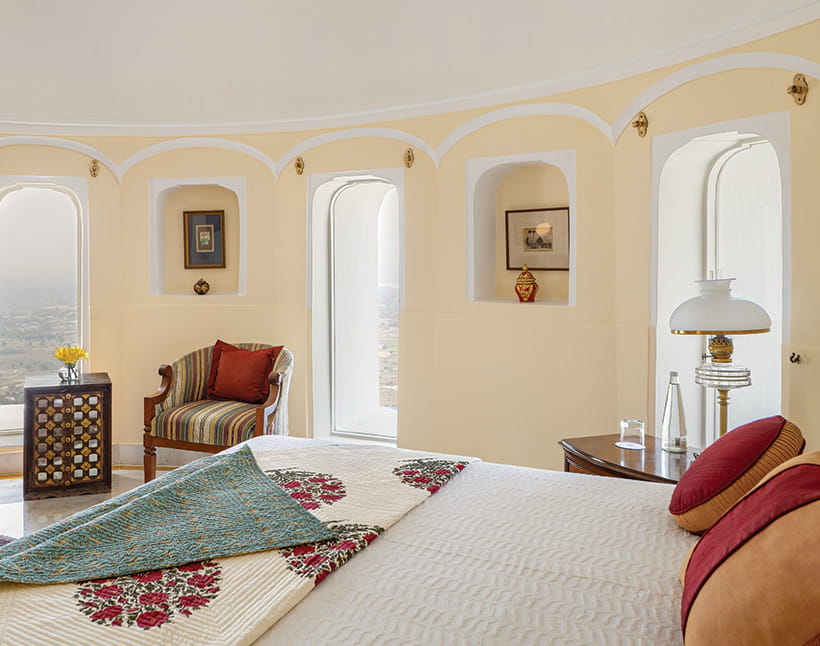 Master BedroomDesigned as a private retreat within the fort, it offers expansive private quarters with a living room and an intimate dining room, along with a spacious ensuite bathroom. Rajasthani textiles and handpicked artefacts create an atmosphere of understated exclusivity.