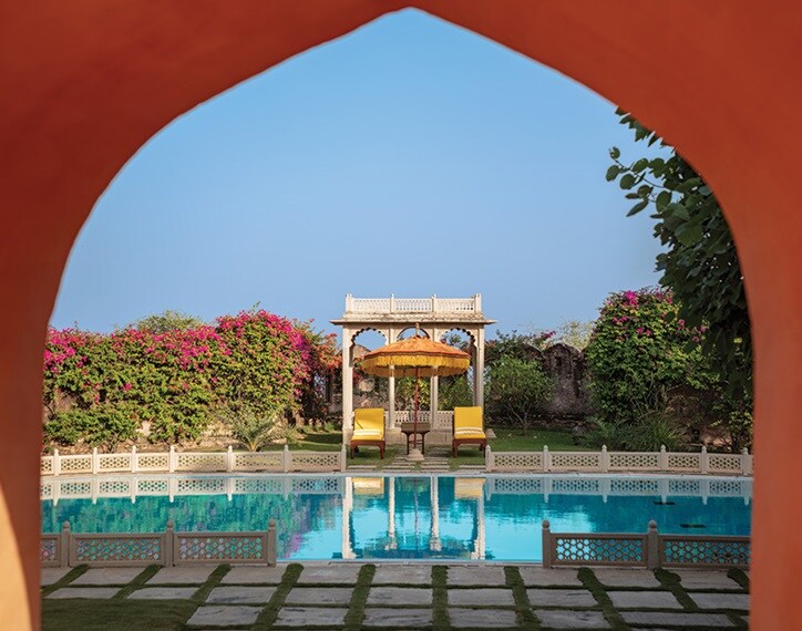 Framed by swaying palm trees and manicured lawns, the poolside comes alive with demure lighting at sunset. Perfect for high tea and barbecue dinners.