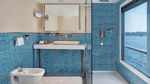 For never ending River Nile views, you can simply open your window. Take in the sights from your comfortable armchair or from the comfort of your bed. Decorated in a natural palette, with clean lines and natural fabrics, these spacious cabins also include a living space and a bathroom with a shower.