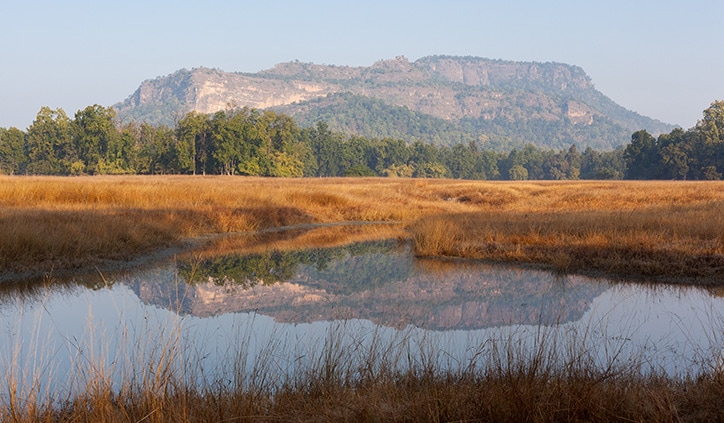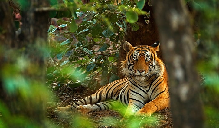 Embraced by the Vindhya Hills in Madhya Pradesh, Bandhavgarh National Park is a lush and rugged landscape rich in biodiversity, with a population of around 150 Royal Bengal Tigers.