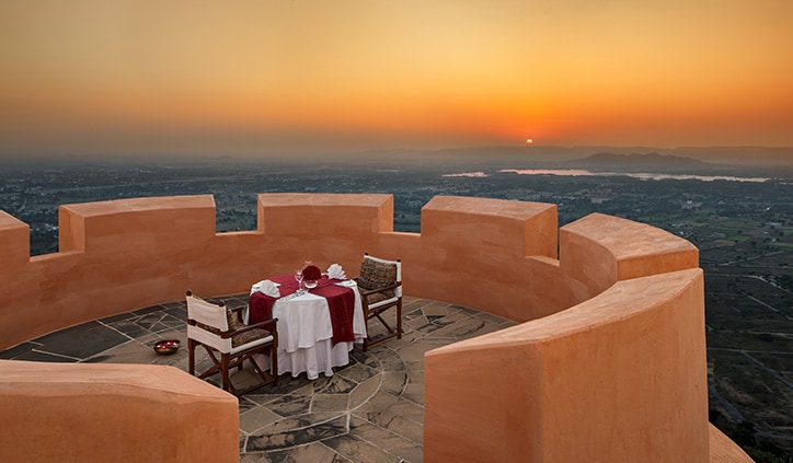 Dining is a highlight of every luxury stay in Jaipur at Naila Fort. Oberoi chefs design daily menus in consultation with guests, drawing inspiration from royal Rajasthani and Mughal cuisines, as well as international flavours, for a truly personalised experience. Meals can be enjoyed in the ornate dining hall, at the poolside, or on the fortified terrace overlooking the city of Jaipur, beside views unmatched by other fort hotels in Jaipur.